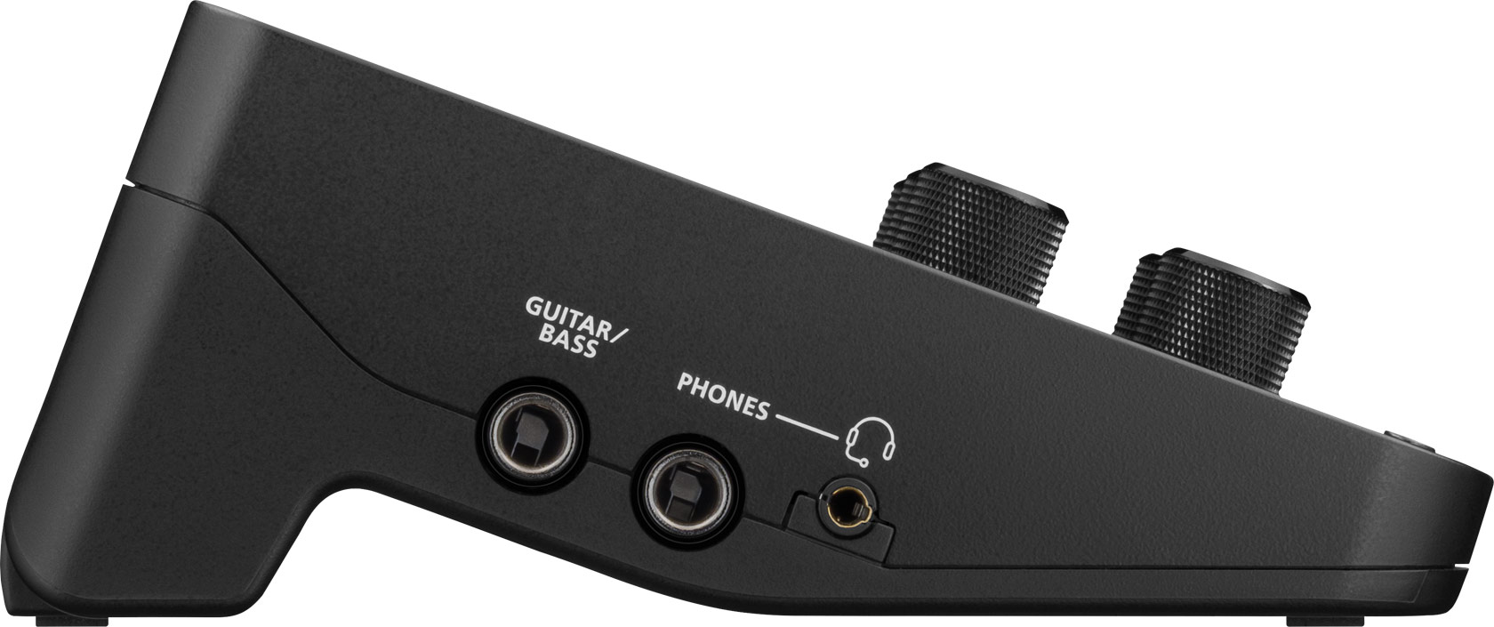 With a generous selection of inputs, GO:MIXER STUDIO lets you tackle any creative scenario. Two XLR mic/line inputs feature high-quality mic preamps with a wide gain range, allowing for the capture of vocals, acoustic instruments, and other sources in any environment. There’s also a dedicated guitar/bass input, plus 1/4-inch inputs for a stereo instrument like a keyboard, V-Drums kit, or Aerophone. Use the aux input for additional stereo sources, complete with TRRS support for bidirectional audio with mobile devices.
