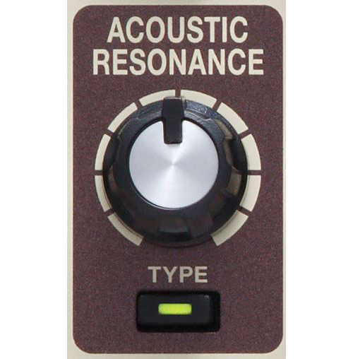『AD-10』の「アコースティック・レゾナンス機能」は、アコースティック・ギターを演奏したときに複雑に影響し合う弦の響きや、ギター胴体部の共鳴を徹底的に解析し再現します。ピックアップから送られる信号では失われがちな、ギター本来のあたたかく奥行きのあるサウンドで演奏することができます。本体パネルの「アコースティック・レゾナンス」つまみを回すだけの簡単操作で、楽器や演奏者の個性に合わせた最適なバランスの音色を得ることができます。