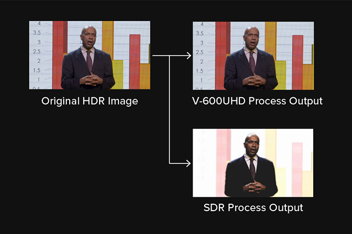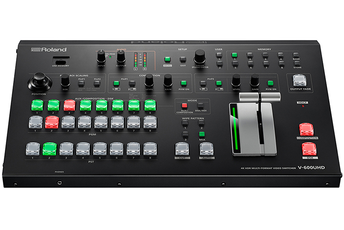 コンサート、スポーツ、講演会などのイベント映像を高画質で演出できる4K対応のビデオ・スイッチャー登場 ~4K、HDR、HDなど異なるフォーマットの映像を組み合わせて鮮やかで美しい映像を実現~ ニュースリリース 2019/2/5 PDFダウンロード ローランド株式会社は、コンサート、スポーツ、講演会など大画面を使用するステージ・イベントで、放送用4Kカメラから民生用のHDカメラ、パソコンなどのさまざまな映像を使って高精細な映像演出を行える、4K対応の業務用マルチフォーマット・ビデオ・スイッチャー『V-600UHD』を、2019年6月に発売します。 『V-600UHD』 大型LEDディスプレイを使ったイベントのイメージ 近年、大型LEDディスプレイの低価格化が進み、音楽フェスティバルやスポーツのパブリック・ビューイング、国際会議、企業の製品プレゼンテーションなどのイベントで、100インチを超える大画面が使用されることが多くなっています。LEDディスプレイの高輝度化が進み、昼間の野外イベントで大型映像が演出されることも増えてきました。また、放送業界で標準化しつつある4Kカメラは、高い輝度と豊かな色を表現することにより高品質の映像表現が可能なHDR(ハイ・ダイナミックレンジ)の対応が進み、非常に明るい環境でも十分美しい映像が手軽に扱えるようになっています。一方イベント会場などでは、パソコンから出力されるプレゼンテーション映像などHD映像が使用されることも多く、従来のHDから最新の4KやHDRまでさまざまな映像信号への対応が求められています。 今回発売する『V-600UHD』は、4KやHDRに対応しつつHDの映像資産も活用できる、使いやすさを重視したビデオ・スイッチャーです。すべての入出力端子に、ローランド独自の“ULTRA SCALER”(*)技術を搭載しており、既存のHD対応のシステムでも、4K、HDR、HDの映像を同時に入出力可能。4KとHD映像を同時に出力できるので、メイン画面としてステージ上の4K大型LEDディスプレイに美しいHDR映像を出力、控え室に備え付けてある液晶TVには一般的なHD映像を出力するといったセッティングが『V-600UHD』1台で可能です。またHDRに対応することで、野外やスポットライトを浴びたステージ上の出演者など映像の明るい部分が真っ白になってしまう「白飛び」を回避。赤色や黄色などの表現力も格段に上がり、野菜や果物などの映像も色鮮やかかつリアルに映し出すことができます。さらに、1秒間に60フレームの画面の書き換えができるので(フル・フレームレート60Hz対応)、スポーツなど速い動きのある映像も滑らかで鮮明に表現でき、イベント会場での臨場感も高まります。 *商標出願中 製品プロモーション動画:http://roland.cm/v-600uhd ●こんな方にオススメ ・従来のHD画質と、高画質の4K/HDR映像コンテンツを同時に扱うイベント演出会社 ・高画質な4K大型ディスプレイを設置するホールやライブ会場などの施設 ●ここがポイント ・従来のHDと、4K、HDRの映像を同時使用可能。高画質をフル活用してイベントの映像演出ができるビデオ・スイッチャー 品名/品番 4K HDRマルチフォーマット・ビデオ・スイッチャー『V-600UHD』 価格 未定 発売時期 2019年6月(予定) 初年度販売台数(国内/海外計) 1,000台 高画質の4K/HDRとHDの素材を同時使用可能 『V-600UHD』は、4K/HDRとHDの映像への対応をスムーズに行える「ULTRA SCALER機能」を搭載。4KやHDRから、従来のHD、SDR(スタンダード・ダイナミックレンジ)の映像信号を変換できます。例えば、既設のHDR非対応の大型ディスプレイに、4K/HDRに対応した業務用ビデオ・カメラの超高画質映像を、コンバーターなしで出力することも可能です。 ●黒つぶれや白飛びがなく、奥行き感のあるきれいな映像に 『V-600UHD』は、HDR信号に対応しているので、黒つぶれや白飛びのない、まるで映画のように奥行き感のある映像処理が可能です。従来のSDR対応のビデオ・カメラとビデオ・スイッチャーでは、明るいLEDディスプレイの前に立った出演者は、顔などの輪郭が白飛びして見えづらくなったり、ぼやけてしまうことがあり、美しい映像を撮るためにはビデオ・カメラの操作に熟練の技術が必要でした。HDR対応の『V-600UHD』とビデオカメラを使うと、明るいLEDディスプレイと、その画面手前に立った出演者を同時に撮影してもこれらの問題が起こりづらいので、LEDディスプレイの映像の美しさをさらに引き出すことができます。また、その映像はSDRにしか対応しないLEDディスプレイにも出力できるので、既存の映像システムを段階的にHDRに対応させることができます。 ●鮮やかな発色、リアルな映像に 『V-600UHD』は、豊かな色を出力できるBT.2020規格(4K放送や4Kブルーレイの色域規格)に対応。また、既存のRGB規格やBT.709規格(現行のHD放送の色域規格)にも対応しているため、鮮やかな発色で映像を映し出すことができます。このBT.2020規格では、特に赤色と黄色の表現力がアップしており、野菜や果物など本来の色やディテールまで表現できるようになっています。さらに、4:4:4/10bi