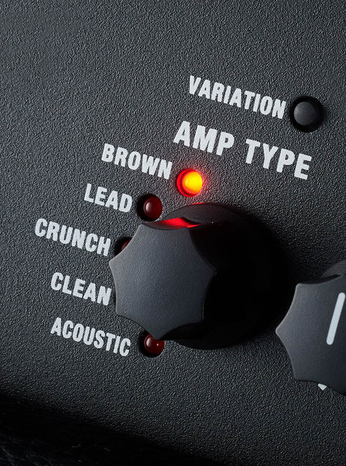 アンプ部には、クリアながら太くパンチのある「CLEAN」、プレイヤーのニュアンスを忠実に反映する「BROWN」、アコースティック・ギターに最適な「ACOUSTIC」など5タイプを搭載。今回のアップグレードでは、各タイプにそれぞれ音色のバリエーションを追加し、合計10種類のアンプ・サウンドを楽しむことができます。