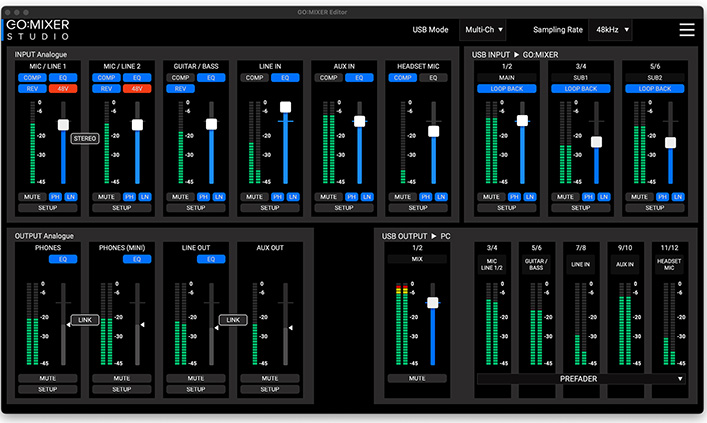 演奏動画の撮影や楽曲制作を高音質で手軽に行えるiOS/PC向けポータブル・オーディオ・インターフェースを発売 ~豊富な入出力端子、高品位なマイクプリアンプやエフェクトを新規搭載。ホームスタジオからアウトドアまで幅広く活用可能~ 2026-01-20 ローランド株式会社は、ホームスタジオでの楽曲制作から屋外での演奏動画の撮影まで、高音質のコンテンツ制作を手軽に行えるポータブルなオーディオ・インターフェース『GO:MIXER STUDIO』を、2026年1月24日(土)に発売します。 『GO:MIXER STUDIO』 『GO:MIXER STUDIO』 使用イメージ ここがポイント • 演奏動画撮影や楽曲制作に使える、iPhone/iPad/PC(Mac/Windows)対応の小型オーディオ・インターフェース • XLRマイク入力、ギター/ベース入力、LINE入出力、USB入出力、ヘッドホン出力など豊富な入出力端子を装備 • 高出力高音質マイクプリアンプやスタジオ機材をモデリングしたエフェクト(コンプレッサー、リバーブ)など多彩な機能を搭載 • 動画撮影時にマルチトラックのオーディオ録音が可能なiOS 用アプリ『GO:MIXER Cam』と、楽曲制作時に視覚的に設定調整できるPC用アプリ『GO:MIXER Editor』の専用アプリに対応 製品の詳細はこちら: https://www.roland.com/jp/products/gomixer_studio/ 製品の動画はこちら: https://youtu.be/sMx_B1omZ08 品名 オーディオ・インターフェース/ミキサー 『GO:MIXER STUDIO』 価格 オープン価格 発売日 2026年1月24日(土) ローランドは、2017年に高音質のライブ配信/動画撮影が手軽に行えるスマートフォン用小型オーディオ・ミキサー「GO:MIXER」を発売。その後、「GO:MIXER PRO」(2018年)や「GO:MIXER PRO-X」(2021年)の上位モデルも展開し、「GO:MIXERシリーズ」としてご好評をいただいています。 今回、同シリーズがさらに進化した最新モデル『GO:MIXER STUDIO』は、iPhone、iPad、およびPC(Mac/Windows)に対応するオーディオ・インターフェース/ミキサーです。高出力高音質マイクプリアンプを搭載し、スタジオ機材をモデリングした高品位なエフェクト(コンプレッサー、リバーブ)を内蔵するなど多彩な機能が追加されました。また、XLR マイク入力(2 系統)、ギター/ベース入力、LINE入出力、AUX入力、ヘッドセットマイク入力、TRS MIDI入出力、USB入出力、ヘッドホン出力など豊富な入出力端子を備え、さまざまな用途に対応できます。さらに、最大サンプル・レート24bit/192kHzに対応しており、高品位なオーディオ・インターフェースとして、PC上の音楽制作ソフトウェアと連携した楽曲制作に活用できます。多機能でありながら、本体440gと軽量、コンパクト・サイズの『GO:MIXER STUDIO』をさまざまな場所に持ち運んで、手間なく、高音質なコンテンツ制作を行えます。 さらに詳しく ●豊富な入出力端子を備えPCにも対応 『GO:MIXER STUDIO』は、豊富な入出力を装備しており、さまざまな用途に対応します。ボーカルやアコースティック楽器など多様な音源を録音できる2系統のXLRマイク/LINE入力、またギター/ベース入力に加え、キーボードや電子ドラムなどのステレオ音声を収録する1/4インチジャック入力も装備。さらに、ステレオ音源用のAUX入力は、モバイルデバイスとの双方向オーディオ接続に対応したTRRS仕様の端子を採用しています。出力は、標準的なスタジオ・ヘッドホン用の1/4インチジャックに加え、有線イヤホン用のミニジャックを装備(ミニジャックは、ヘッドセットやインラインマイクに対応)。スタジオや撮影現場のスピーカー・システムに接続できる2系統の1/4インチジャックLINE出力も備えています。 また新たに、PC(Mac/Windows)接続にも対応。最大サンプル・レート24bit/192kHz対応、12IN/6OUT(192kHz の場合は8IN/4OUT)の高品位なオーディオ・インターフェースとして、音楽制作ソフトウェアと連携した楽曲制作にご使用いただけます。 『GO:MIXER STUDIO』 使用イメージ(弾き語り) 『GO:MIXER STUDIO』 使用イメージ(バンド演奏) ●高品質なクリエイティブワークを支える充実の機能 『GO:MIXER STUDIO』は、高音質なボーカル録音を可能にする高出力高音質マイクプリアンプを2 基搭載。感度が低いダイナミックマイクでも十分な出力を確保できます。スタジオ機材をモデリングした高品質なエフェクト(コンプレッサー、リバーブ)を内蔵し、各チャンネルのEQ調節も可能。アナログ出力にはデュアルバスを採用しており、ヘッドホン出力とLINE出力のミキシングの組み合わせ、EQを独立して選択・調整できます。USBマルチチャンネルにも対応、PC上では複数のUSB入出力として認識するため、PC上のさまざまなアプリの音声を独立して調整したり、特定の入力端子の音声だけを音楽制作ソフトウェアへ送ったりすることも可能です。 また、これらの豊富な機能を『GO:MIXER STUDIO』単体で直感的に調整できるカラーLCD モニターを内蔵。画面を見ながら、ツマミやボタンを使って細かく調整を行うことができます。さらには、『GO:MIXER STUDIO』で設定したミキシング内容を16個のシーン・メモリーに保存できるので、スタジオでの楽曲制作、屋外でのパフォ