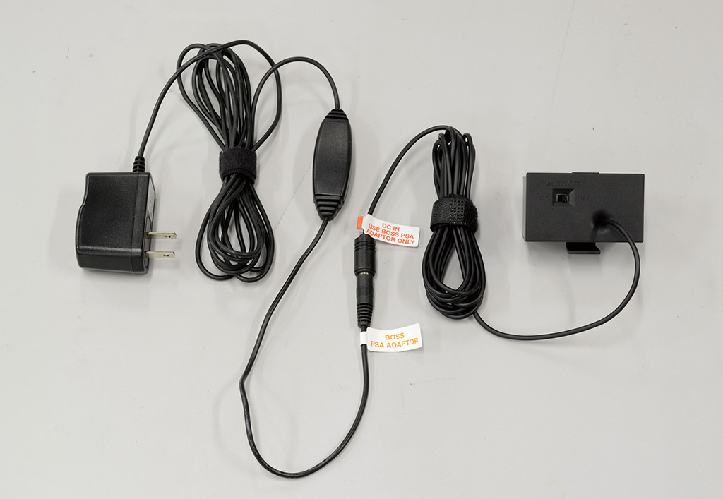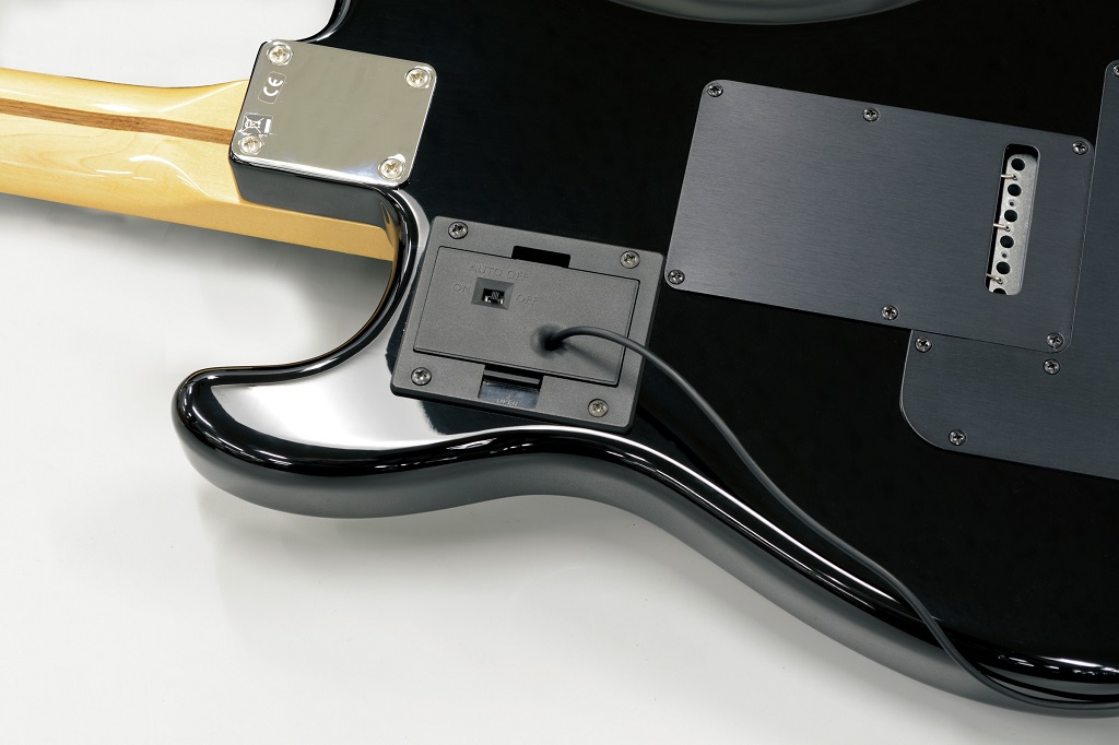 ギター本体の裏にあるバッテリー・ボックスに収まる設計で、ACアダプター(PSA-100:別売)の使用を可能にします。