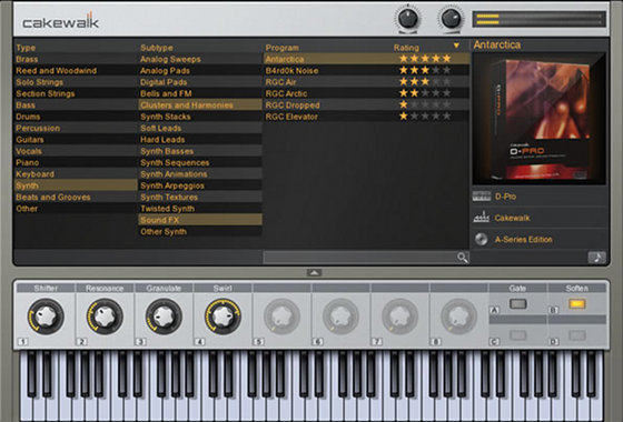 O Cakewalk Sound Center é perfeito para os iniciantes que querem utilizar instrumentos virtuais. Utilize 150 sons de instrumentos em uma interface de fácil uso, que inclui guitarras, violões, baixos, baterias, pianos, sintetizadores, cordas, entre outros.