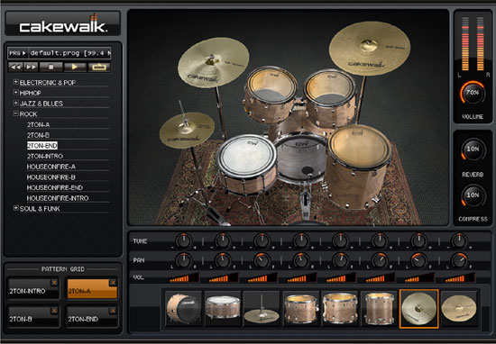 - Carregue timbres e grooves de bateria de diversos estilos;