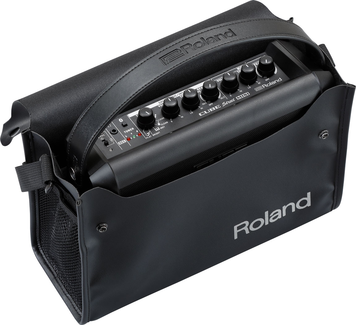Geantă de transport concepută pentru amplificatorul MOBILE CUBE/MOBILE AC, făcută din material rezistent și impermeabil. Include o curea de umăr și un buzunar din plasă.