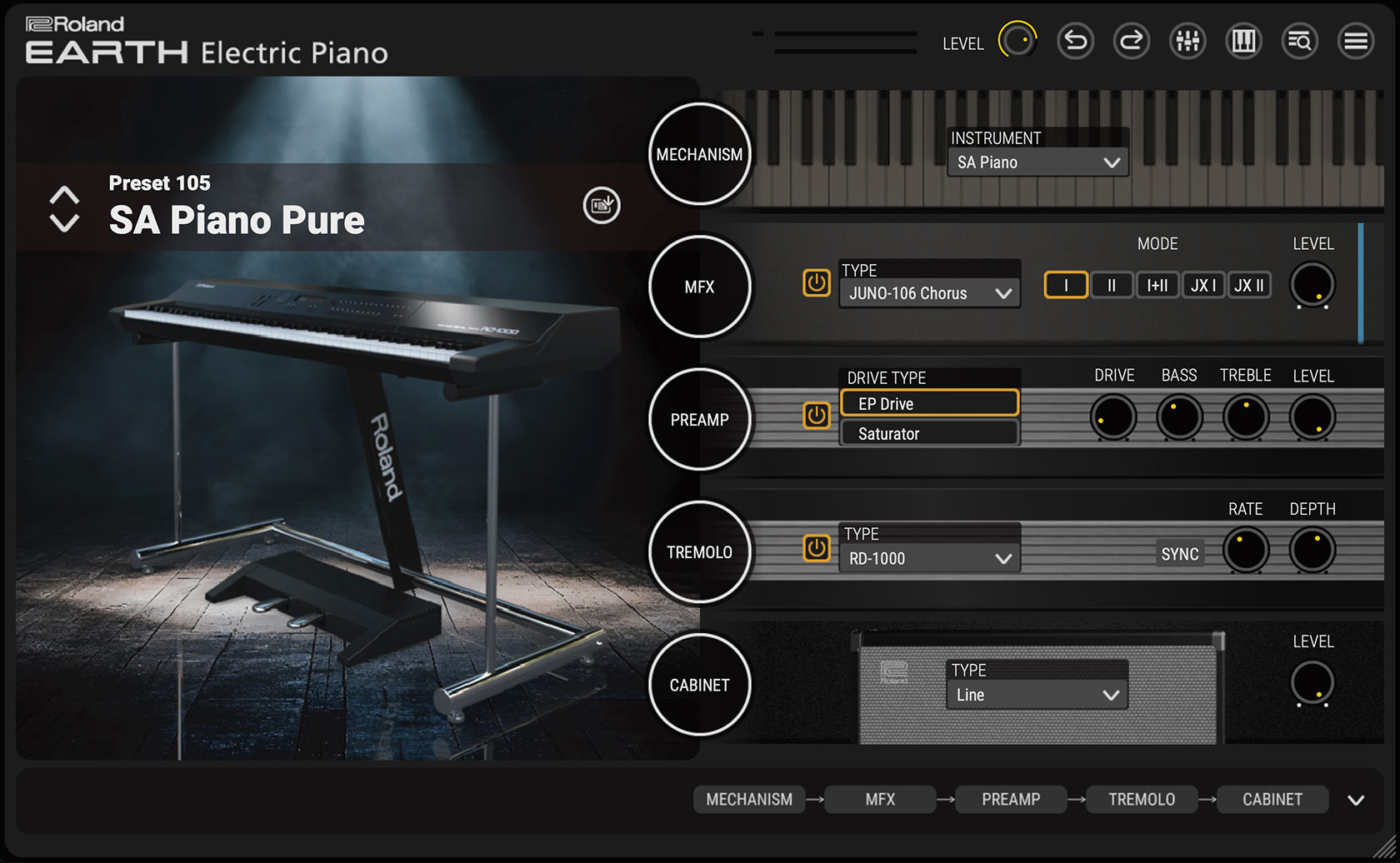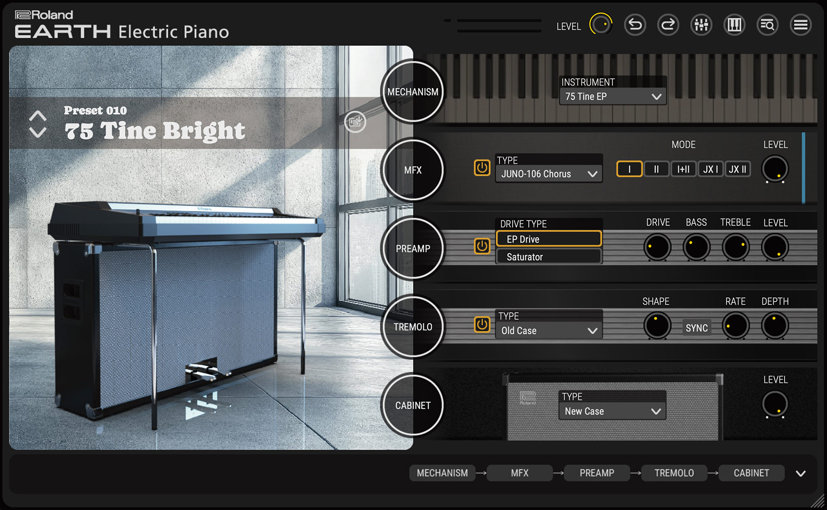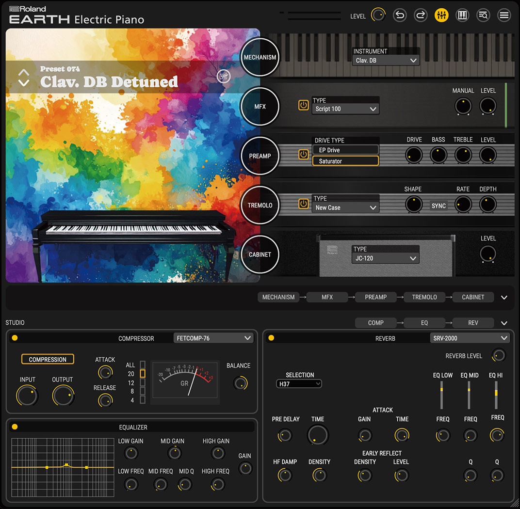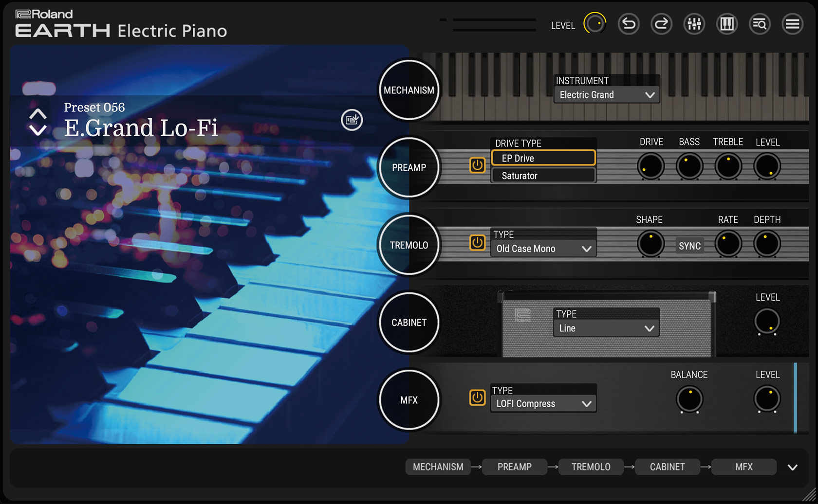 Leveraging the power of ZENOLOGY FX, EARTH Electric Piano includes more than 90 effect types to push your sound into new creative territory. Experiment with everything from subtle modulation and delay to wild lo-fi textures, loopers, bit crushers, pitch shifters, and more.